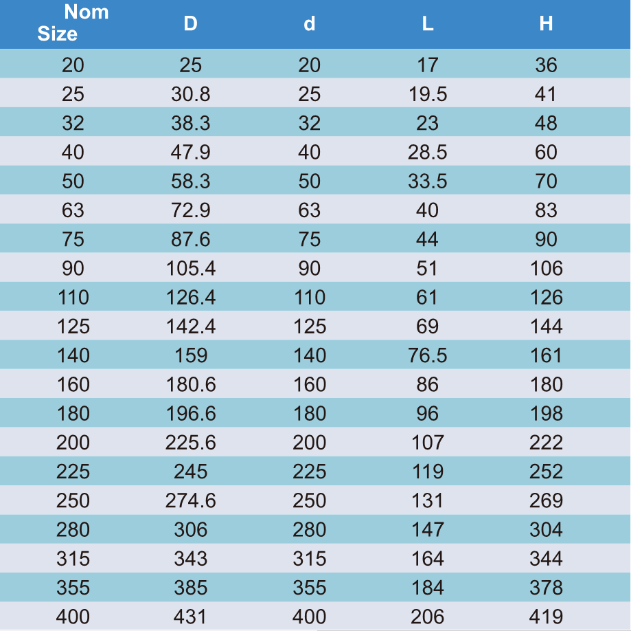 Dimensions: 20mm-400mm